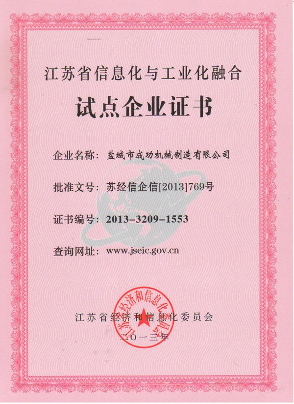 • 江蘇省信息化試點(diǎn)企業(yè)證書(shū)